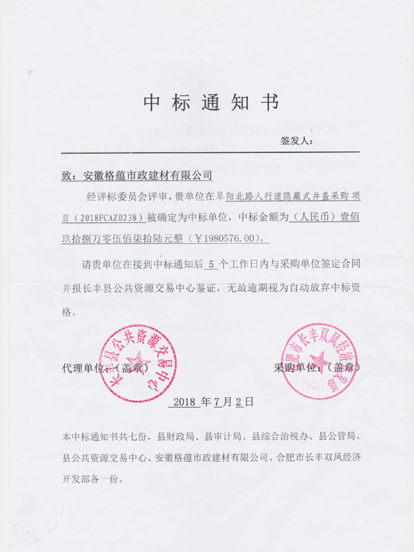 安徽广电合肥分公司 2017 年井盖采购项目