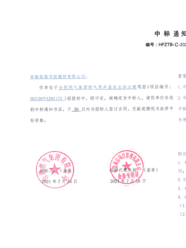合肥供水集团供水工程客并设施材料(钢纤维混凝) 合格供应商(2次)项目