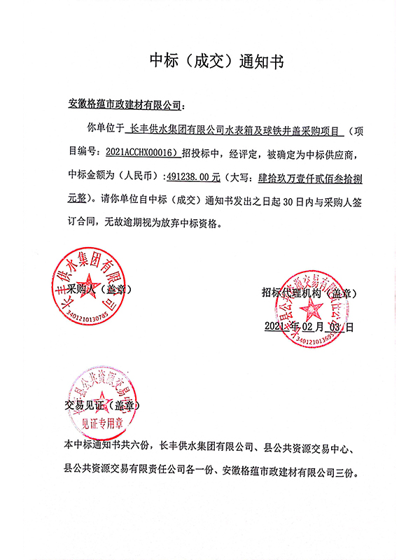 长丰供水集团有限公司钢纤维混凝土客井盖、水表箱及大理石不锈钢井盖采购项目