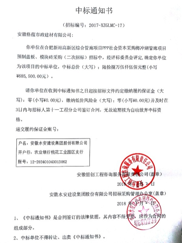 长丰自来水厂钢纤维水表箱中标通知